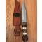 Couteau Marbles Scottish Dirk Scotland Sgian Dubh Stainless Blade Bone/Wood Handle Leather Sheath à lame fixe - Longueur totale 45.72cm - Longueur de lame 29.84cm - Lame en acier inox finition satin - Lame de type clip point plain edge - Manche en os & bois - Garde & pommeau en laiton - Etui cuir