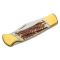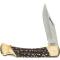 Couteau EDC Schrade Papa Bear LB8 Next Gen 7Cr17MoV Staglon Handles Lockback Leather Sheath pliant - Longueur ouvert 22.09cm - Longueur fermé 12.70cm - Longueur de lame 9.39cm - Epaisseur de lame 3mm - Lame de type clip point plain edge finition satin - Lame en acier 7Cr17MoV plain edge finition satin. Platines et mitres en laiton - Plaquettes du manche en staglon - Ouverture à 2 mains - Système de sécurité lockback - Etui cuir
