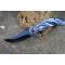 CCouteau Semi AUto Dragon Scale Décor Dragon Bleu Lame Recurve Inox Manche ABS Noir Linerlock Clip