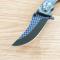 Lame Acier Inoxydable profil Drop Point (8,26 cm) finition noire et écailles bleues.