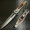 Couteau Semi Automatique ElitEdge Silver Needle Lame Dague Acier 440 Manche Acier/Bois Linerlock