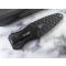 Le manche est composé de plaquettes en Black Anodized Aluminum (aluminium anodisé noir). Ce matériau léger et durable offre une excellente résistance aux rayures et une prise en main ferme grâce à son usinage ergonomique. La sécurité est assurée par un mécanisme Linerlock robuste. Le couteau dispose d'une soie étendue (extended tang), d'un passage pour lanière (lanyard hole) et d'un clip de poche en acier pour un transport sécurisé.