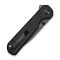 Le manche est fait de Micarta noir, un matériau composite durable et léger offrant une texture agréable et une excellente prise en main, même en conditions humides. Le déploiement de la lame est d'une fluidité remarquable grâce à l'intégration d'un pivot sur roulements à billes en céramique, activé par un flipper ou un téton de pouce. Le mécanisme de verrouillage Linerlock assure un blocage sécurisé de la lame en position ouverte.