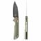 Le manche est équipé de plaquettes en G10 de couleur Vert Olive Drap (OD Green), usinées avec précision pour une prise en main antidérapante et fiable, même dans des conditions difficiles. Le G10 offre une durabilité et une résistance aux intempéries incroyables sans alourdir le couteau.