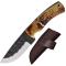 Couteau de Chasse Bushcraft American Hunter 1055 Carbon Blade Bone Handle Leather Sheath à lame fixe - Longueur totale 22.86cm - Longueur de lame 11.43cm - Lame de type drop point plain edge finition 2 tons - Lame en acier carbone 1055 - Construction d'une seule pièce - Full Tang - Plaquettes du manche en os - Mosaic pins - Trou dans le manche pour dragonne - Etui cuir
