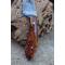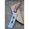Laissez-vous séduire par ce couteau Skinner d'exception, une pièce unique issue d'une fabrication artisanale méticuleuse, alliant performance technique et esthétique artistique. Conçu pour le chasseur exigeant ou le collectionneur averti, ce couteau de chasse se distingue immédiatement par sa lame au motif captivant et son manche vibrant.