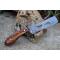 Couteau Skinner Artisanal Unique | Lame Damas 256 Couches ajourée "Scène de Chasse" | Manche Résine Burl Hybride & Étui Simili