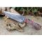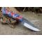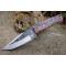 Couteau de chasse Skinner Survie à lame fixe - Longueur totale 22.5cm - Longueur de lame 12cm - Lame en acier carbone 1075 demi brut de forge - Lame type clip point plain edge finition 2 tons - Construction d'une seule pièce - Full tang - Plaquettes du manche en résine - Micro fissure qui ne remet pas en cause la solidité - Trou dans le manche pour dragonne - Etui simili cuir - Fabrication artisanale