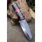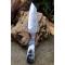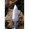 Couteau de chasse Skinner Survie à lame fixe - Longueur totale 20cm - Longueur de lame 11cm - Lame en acier carbone 1075 demi brut de forge - Lame type Sheepfoot plain edge finition 2 tons - Construction d'une seule pièce - Full tang - Plaquettes du manche en résine - - Trou dans le manche pour dragonne - Entretoises en laiton - Mitres en résine - Etui simili cuir - Fabrication artisanale
