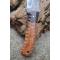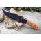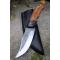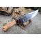Couteau de chasse Skinner Survie à lame fixe - Longueur totale 22.5cm - Longueur de lame 12cm - Lame en acier carbone 1075 demi brut de forge - Lame type clip point plain edge finition 2 tons - Construction d'une seule pièce - Full tang - Plaquettes du manche en bois - Mitres en bois - Manche & mitres usinées - Etui cuir - Fabrication artisanale