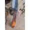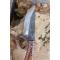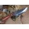Couteau de chasse Skinner Survie à lame fixe - Longueur totale 20cm - Longueur de lame 10cm - Lame en acier carbone 1075 demi brut de forge - Lame type drop point plain edge finition 2 tons - Construction d'une seule pièce - Full tang - Plaquettes du manche en bois black red - Manche usiné - Trou pour dragonne - Etui cuir - Fabrication artisanale