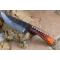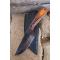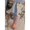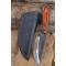 Couteau de chasse Skinner Survie à lame fixe - Longueur totale 20cm - Longueur de lame 10cm - Lame en acier carbone 1075 demi brut de forge - Lame type drop point plain edge finition 2 tons - Construction d'une seule pièce - Full tang - Plaquettes du manche en bois black red - Manche usiné - Trou pour dragonne - Etui cuir - Fabrication artisanale