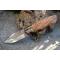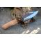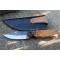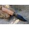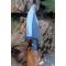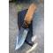 Couteau de chasse Skinner Survie à lame fixe - Longueur totale 19.5cm - Longueur de lame 8.5cm - Lame en acier carbone 1075 demi brut de forge - Lame type drop point plain edge finition 2 tons - Construction d'une seule pièce - Full tang - Plaquettes du manche en bois d'olivier - Mitres résine - Etui cuir - Fabrication artisanale