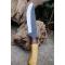 Couteau de chasse Skinner Survie à lame fixe - Longueur totale 25cm - Longueur de lame 14cm - Lame en acier carbone 1075 demi brut de forge - Lame type drop point plain edge finition 2 tons - Construction d'une seule pièce - Full tang - Plaquettes du manche en bois d'olivier - Mitres bois de rose - Etui similicuir - Fabrication artisanale