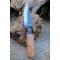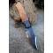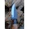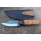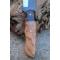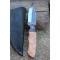 Couteau de chasse Skinner Survie à lame fixe - Longueur totale 19.5cm - Longueur de lame 8.5cm - Lame en acier carbone 1075 demi brut de forge - Lame type clip point plain edge finition 2 tons - Construction d'une seule pièce - Full tang - Plaquettes du manche en bois d'olivier - Entretoises en laiton - Mitres résine - Etui cuir - Fabrication artisanale
