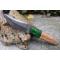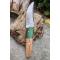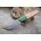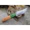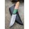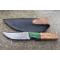 Couteau Damas Skinner 256 couches à lame fixe : Longueur totale 19cm. Longueur de lame 9cm. Epaisseur de lame 4.5mm. Lame en acier damas 256 couches. Lame construction plate semelle. Lame de type clip point . Plaquettes du manche en bois d'olivier. Mitres cocobolo. Étui en cuir - Les dessins de la lame sont uniques comme une empreinte - Fabrication artisanale