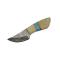 Couteau de Chasse Damascus Skinner Bone/Turquoise Handle 256 Layers Blade Leather Sheath à lame fixe. Longueur totale 15,57cm. Longueur de lame 6.99cm. Lame en acier damas 256 couches. Plaquettes du manche en os & insert turquoise. Lame construction plate semelle. Trou dans le manche pour dragonne. Etui en cuir marron.