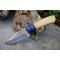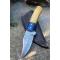 Couteau Damas Skinner 256 couches à lame fixe : Longueur totale 19.5cm. Longueur de lame 8.5cm. Lame en acier damas 256 couches. Lame construction plate semelle. Lame de type clip point. Plaquettes du manche en bois . Mitres en résine. Étui en cuir - Les dessins de la lame sont uniques comme une empreinte - Fabrication artisanale