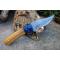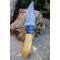 Couteau Skinner Damas Lame Clip Point Acier 256 Couches Manche Bois/Résine Etui Cuir Fab Artisanale