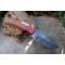 Couteau Damas Skinner 256 couches à lame fixe : Longueur totale 21cm. Longueur de lame 10cm. Lame en acier damas 256 couches. Lame construction plate semelle. Lame de type drop point. Plaquettes du manche en bois. Mitres en bois. Étui en simili cuir - Les dessins de la lame sont uniques comme une empreinte - Fabrication artisanale