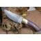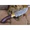 Couteau Skinner Damas Lame Drop Point Acier 256 Couches Manche Bois/Laiton Etui Cuir F Artisanale