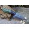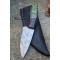 Couteau Damas Skinner 256 couches à lame fixe : Longueur totale 20cm. Longueur de lame 10cm. Lame en acier damas 256 couches. Lame construction plate semelle. Lame de type drop point. Dos de la lame guilloché côté manche. Plaquettes du manche en résine. Mitres en bois. Étui en similicuir - Les dessins de la lame sont uniques comme une empreinte - Fabrication artisanale