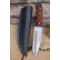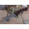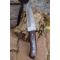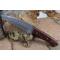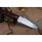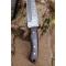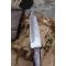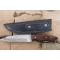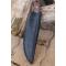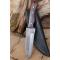 Couteau Damas Skinner 256 couches à lame fixe : Longueur totale 22cm. Longueur de lame 11.5cm. Lame en acier damas 256 couches. Lame construction plate semelle. Lame de type drop point . Plaquettes du manche en bois de rose. Trou pour dragonne. Étui en similicuir - Les dessins de la lame sont uniques comme une empreinte - Fabrication artisanale. Beaux dessins de damas