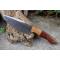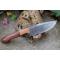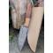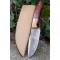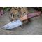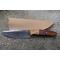 Couteau Damas Skinner 256 couches à lame fixe : Longueur totale 22.5cm. Longueur de lame 11.5cm. Lame en acier damas 256 couches. Lame construction plate semelle. Lame de type harpoon. Plaquettes du manche en bois & résine. Étui en simili cuir - Les dessins de la lame sont uniques comme une empreinte - Fabrication artisanale