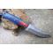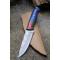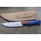 Couteau Damas Skinner 256 couches à lame fixe : Longueur totale 21.5cm. Longueur de lame 11cm. Lame en acier damas 256 couches. Lame construction plate semelle. Lame de type trailing point. Dos de la lame guillochée. Plaquettes du manche en bois atlantide. Mitres cobolo. Étui en similicuir - Les dessins de la lame sont uniques comme une empreinte - Fabrication artisanale