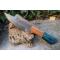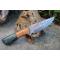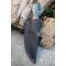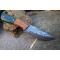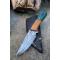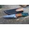 Couteau Damas Skinner 256 couches à lame fixe : Longueur totale 20.5cm. Longueur de lame 10cm. Lame en acier damas 256 couches. Lame construction plate semelle. Lame de type trailing point . Plaquettes du manche en bois. Mitres olivier. Étui en similicuir - Les dessins de la lame sont uniques comme une empreinte - Fabrication artisanale