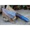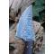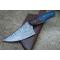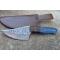 Couteau Damas Skinner 256 couches à lame fixe : Longueur totale 21.5cm. Longueur de lame 10.5cm. Lame en acier damas 256 couches. Lame construction plate semelle. Lame de type upswept. Plaquettes du manche en bois. Mitres bois. Étui en cuir - Les dessins de la lame sont uniques comme une empreinte - Fabrication artisanale