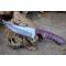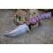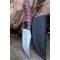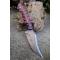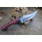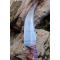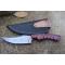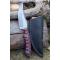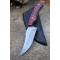 Couteau Damas Skinner 256 couches à lame fixe : Longueur totale 22cm. Longueur de lame 10.5cm. Epaisseur 5mm. Lame en acier damas 256 couches. Lame construction plate semelle. Lame de type upswept. Plaquettes du manche en bois blue/red 3D. Bois usiné. Étui en similicuir - Les dessins de la lame sont uniques comme une empreinte - Fabrication artisanale
