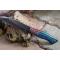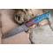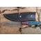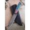 Couteau Damas Skinner 256 couches à lame fixe : Longueur totale 24cm. Longueur de lame 12cm. Lame en acier damas 256 couches. Lame construction plate semelle. Lame de type wharncliffe. Plaquettes du manche en bois de rose. Mitres cobolo. Étui en similicuir - Les dessins de la lame sont uniques comme une empreinte - Fabrication artisanale