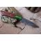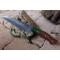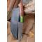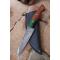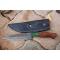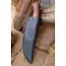 Couteau Damas Skinner 256 couches à lame fixe : Longueur totale 24cm. Longueur de lame 12.5cm. Lame en acier damas 256 couches. Lame construction plate semelle. Lame de type wharncliffe. Plaquettes du manche en bois de rose. Mitres cobolo. Étui en similicuir - Les dessins de la lame sont uniques comme une empreinte - Fabrication artisanale