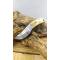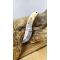 Couteau Skinner Damas Manche en os Lame à pointe clip en acier Damas Etui en Cuir