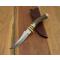 Couteau Skinner Lame Acier Carbone/Inox Manche Bois De Cerf Etui Cuir SS7002
