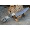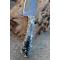 Couteau Skinner de Poche à lame fixe - Longueur totale 20cm - Longueur de lame 10cm - Lame en acier damas 256 couches - Damas bubble - Lame type drop point - Construction d'une seule pièce - Full tang - Plaquettes du manche en résine ghost - Etui simili cuir - Fabrication artisanale