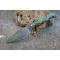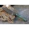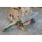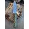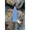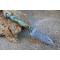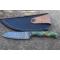 Couteau Skinner Bubble à lame fixe - Longueur totale 17.5cm - Longueur de lame 8cm - Lame en acier damas 256 couches - Damas bubble - Lame type drop point - Construction d'une seule pièce - Full tang - Plaquettes du manche en résine pistache - Etui simili cuir - Fabrication artisanale