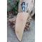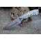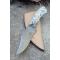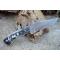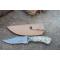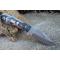 Couteau Skinner de Poche à lame fixe - Longueur totale 20cm - Longueur de lame 10cm - Lame en acier damas 256 couches - Lame type clip point - Construction d'une seule pièce - Full tang - Plaquettes du manche en résine noir & blanc - Etui simili cuir havane - Fabrication artisanale