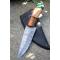 Couteau Skinner Lame Acier Damas 256 Couches Manche 3 Bois Etui Simili Cuir Fab Artisanale
