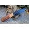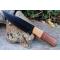 Couteau Skinner Tactical Urban Chasse à lame fixe - Longueur totale 22.5cm - Longueur de lame 12cm - Lame en acier carbone 1055 finition black - Lame type drop point plain edge - Construction d'une seule pièce - Full tang - Plaquettes du manche en bois - Mitres en bois - Etui simili cuir - Fabrication artisanale