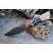 Couteau Skinner Cuisine Chasse à lame fixe - Longueur totale 22cm - Longueur de lame 10.5cm - Lame en acier carbone 1055 finition black - Lame type drop point plain edge - Construction d'une seule pièce - Full tang - Plaquettes du manche en bois & résine - Mitres en bois - Etui simili cuir - Fabrication artisanale