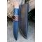 Couteau Skinner Lame Drop Point Acier Carbone 1055 Black Manche Bois/Résine Etui Cuir Fab Artisanale
