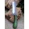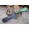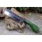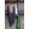 Couteau Skinner Lame Rasoir Acier Carbone 1055 Manche Bois Green 3D Etui Simili Fabr Artisanale