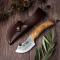 Il possède un écorcheur/dépeceur au dos de sa lame et est fabriqué avec des écailles en bois d'olivier naturel.