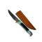 Le manche est fait en corne naturelle et de résine turquoise, créant un motif contrasté et distinctif. La construction est Lame Fixe, offrant une robustesse à toute épreuve. Ce modèle est livré avec une gaine de ceinture en cuir marron pour un transport sécurisé et confortable.