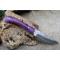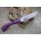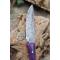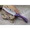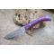 Couteau Skinner de Poche Lame Acier Damas 256 Couches Manche Purple Etui Simili Fab Artisanale