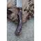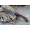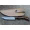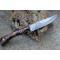 Couteau Skinner de Poche à lame fixe - Longueur totale 17.5cm - Longueur de lame 8.5cm - Lame en acier damas 256 couches - Lame type drop point - Construction d'une seule pièce - Full tang - Plaquettes du manche en résine façon bocotte - Etui simili cuir havane - Fabrication artisanale