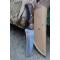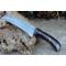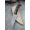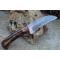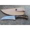Couteau Skinner de Poche à lame fixe - Longueur totale 18cm - Longueur de lame 9cm - Lame en acier damas 256 couches - Lame type sheepfoot - Construction d'une seule pièce - Full tang - Plaquettes du manche en résinefaçon bois - Etui simili cuir - Fabrication artisanale