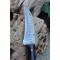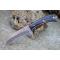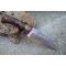 Couteau Skinner de Poche Lame Acier Damas 256 Couches Manche Résine Façon Bois Etui SimiliCuir Fab Artisanale